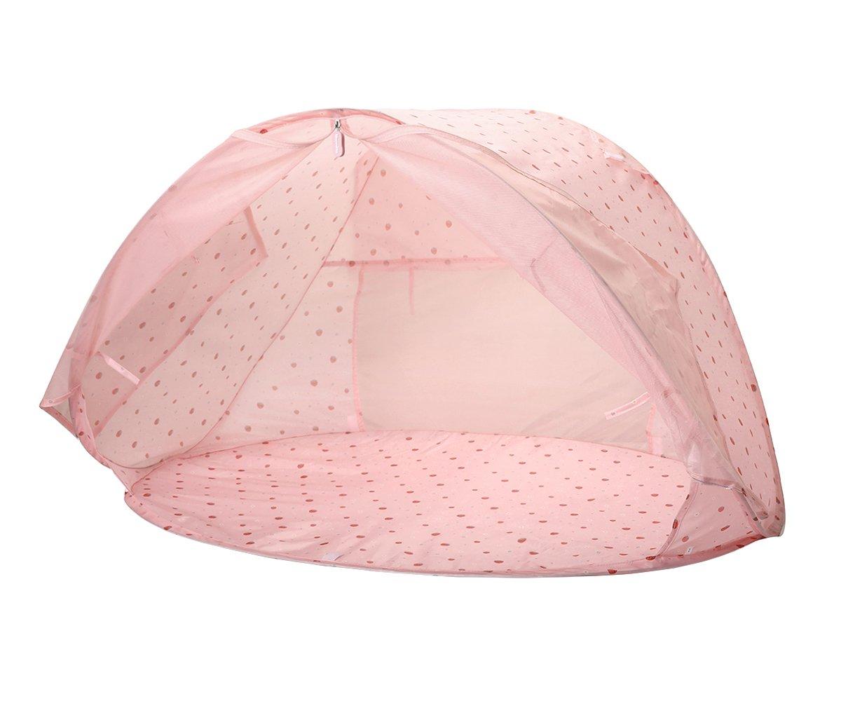 Il modello della collezione Monneka Estate 2025 dispone di una zanzariera con cerniera che chiude la tenda in modo da proteggere i bambini dagli insetti durante il riposo e il gioco.
