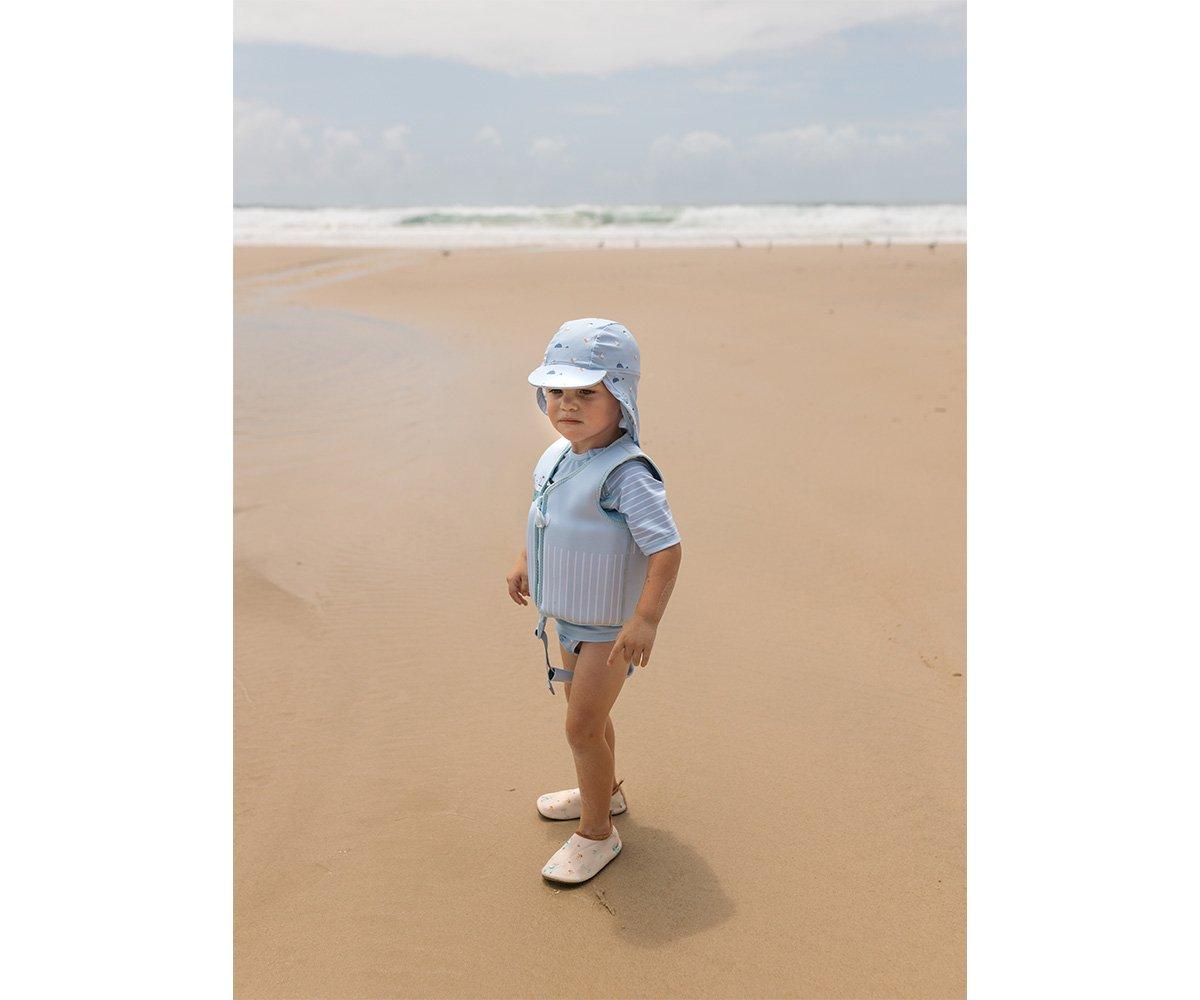 Cappello da spiaggia per bebè con protezione UV 50+, visierina e patellina per coprire il collo. E' ideale per la spiaggia e la piscina, lascia respirare ed asciuga rapidamente.