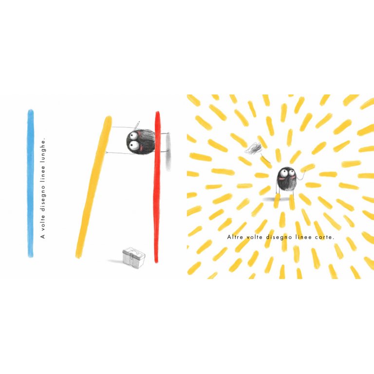 Mi piace tanto disegnare linee. A volte disegno linee sottili, più sottili, sempre più sottili. Altre volte linee grosse, colorate o corte corte. E con le linee creo quadrati, triangoli, sogni, case e molte, molte altre cose. E tu cosa riesci a fare con una linea?