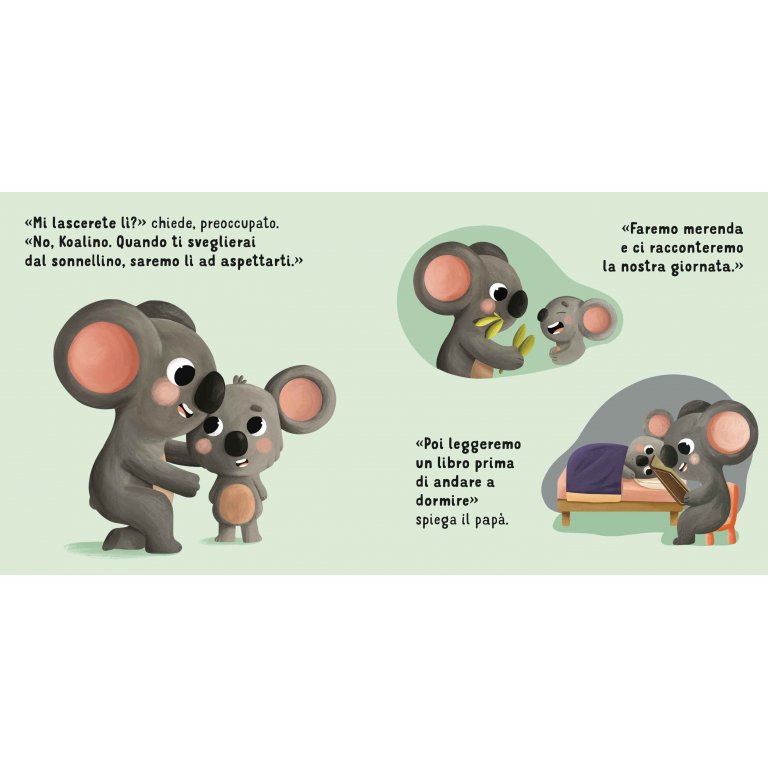Un libro cartonato dedicato ai più piccoli che, seguendo la storia di Koalino, potranno immedesimarsi nel protagonista e affrontare con più serenità l’inizio della scuola e il distacco da mamma e papà. Il libro è stato scritto con la collaborazione di un esperto di pedagogia.