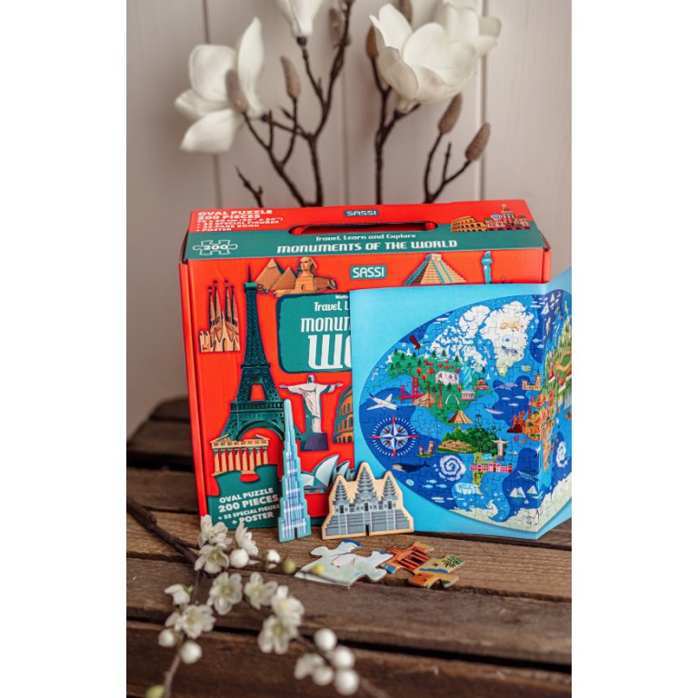 Parti per un viaggio emozionante e impara conoscendo i monumenti più famosi del mondo riconosciuti dall'UNESCO come Patrimoni dell'Umanità! Con 32 formine da assemblare e posizionare sul puzzle, stimolerai il tuo apprendimento della geografia mentre esplori torri, palazzi, anfiteatri, antiche piramidi e moderni grattacieli.